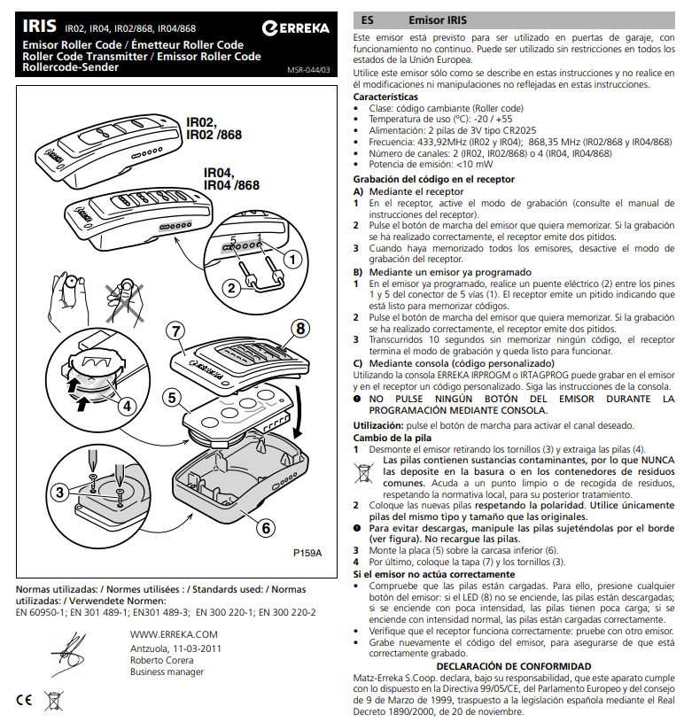 Sé el primero en valorar “Emisor Roller Iris de Erreka para frecuencias 433 y 868 con 2 ó 4 canales”